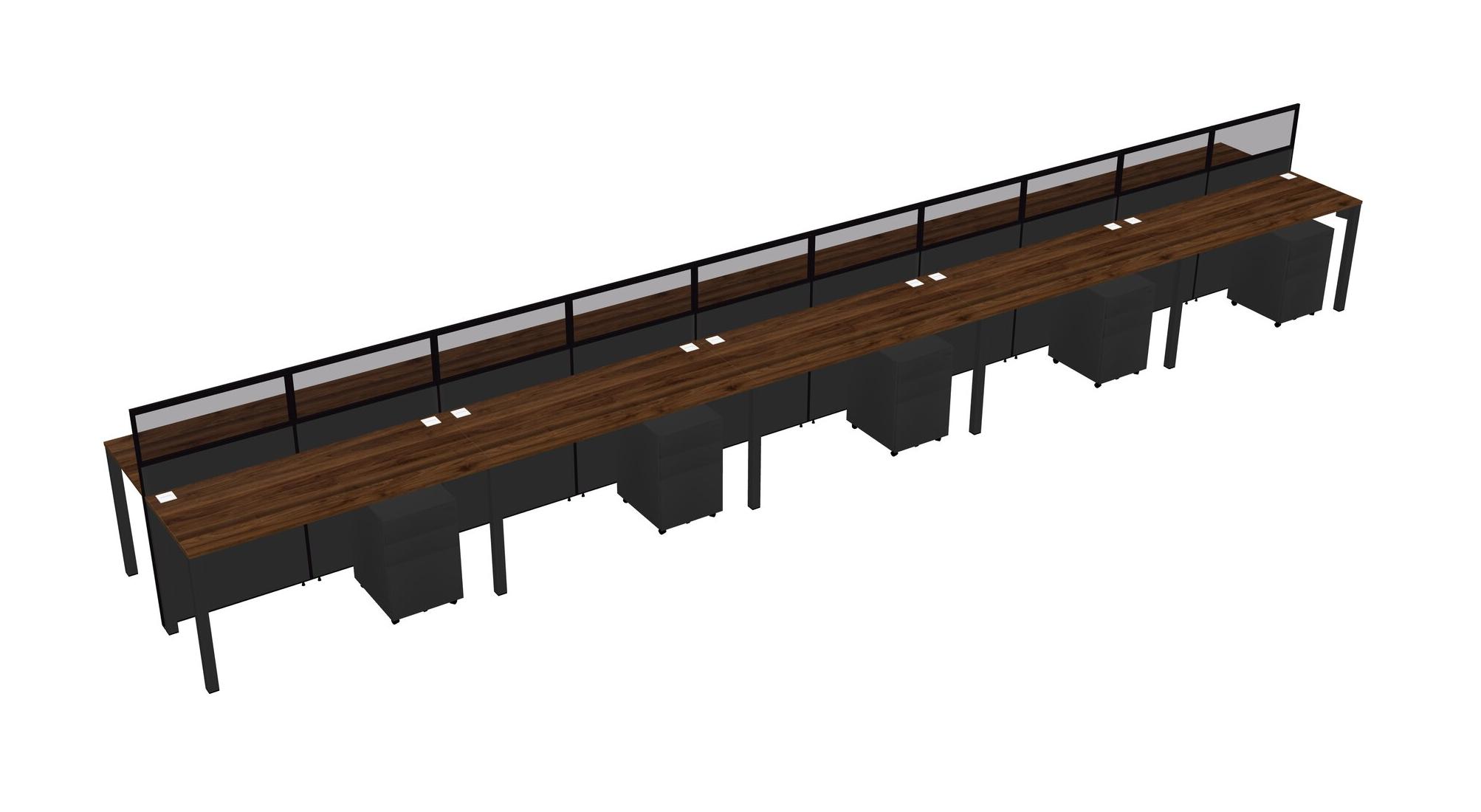 Columbia Walnut Shared Rectangular Office Cubicle Panel System With Mobile Drawers For 10 Persons