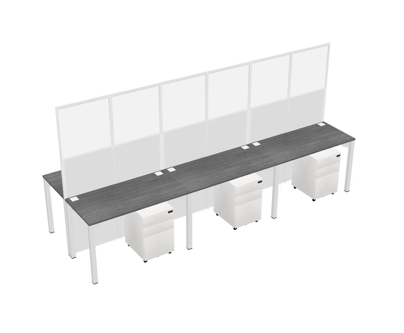 Grey Shared Rectangular Office Cubicle Panel System With Mobile Drawers For 6 Persons