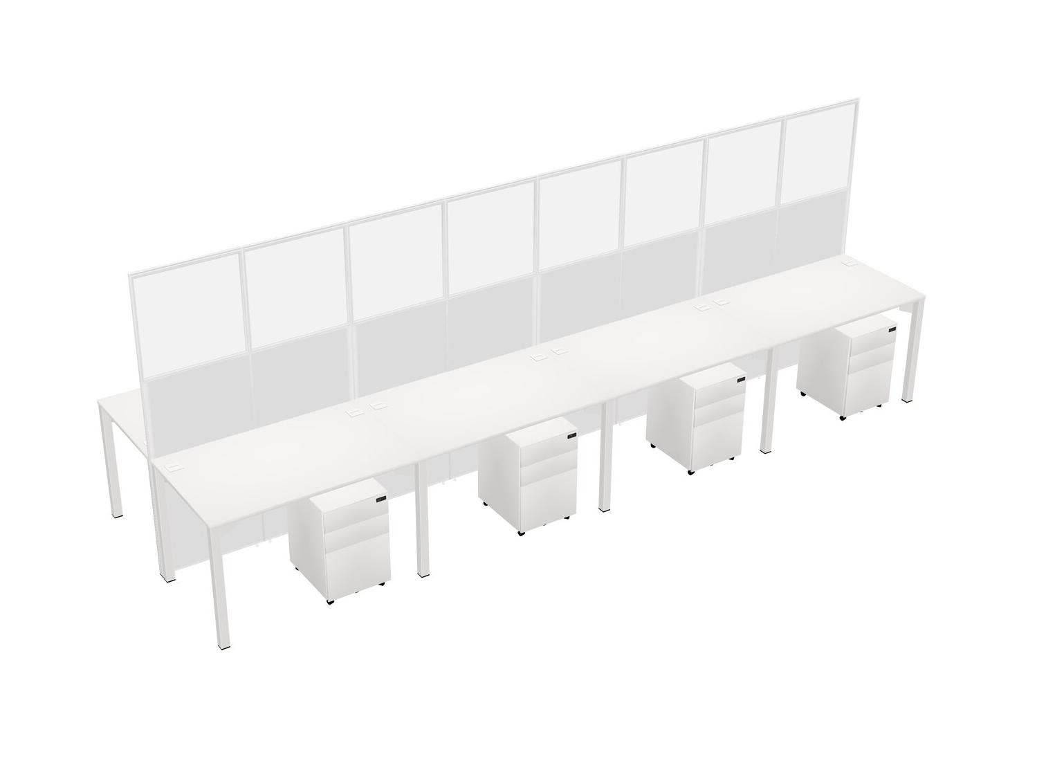 White Shared Rectangular Office Cubicle Panel System With Mobile Drawers For 8 Persons