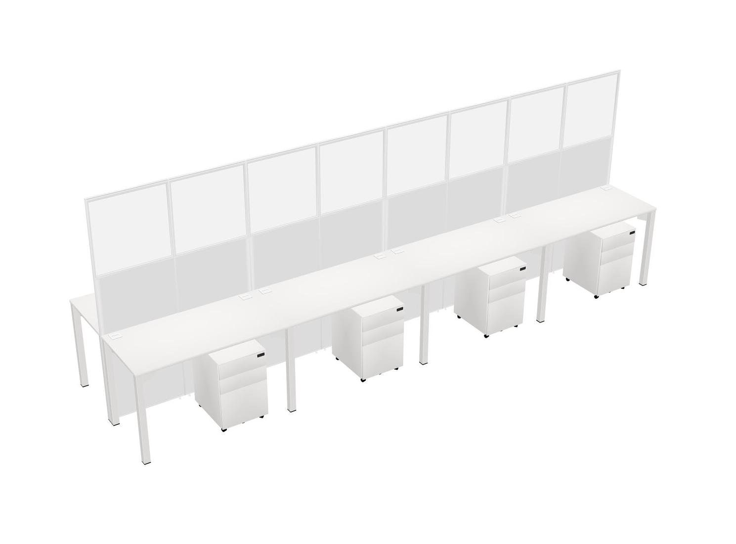 White Shared Rectangular Office Cubicle Panel System With Mobile Drawers For 8 Persons