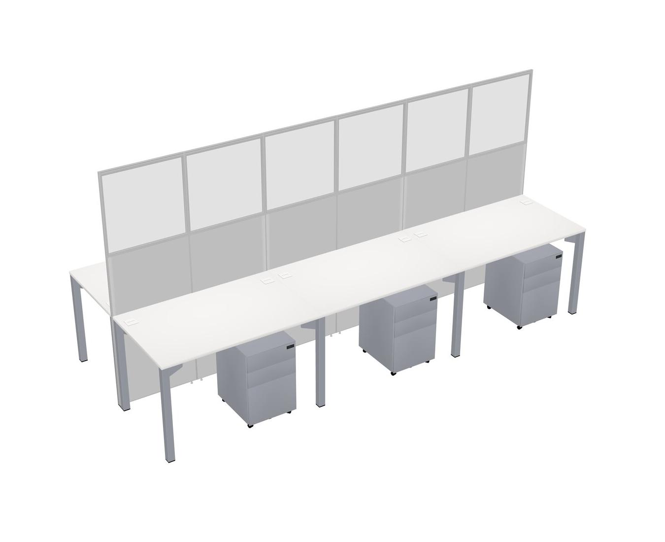 White Shared Rectangular Office Cubicle Panel System With Mobile Drawers For 6 Persons