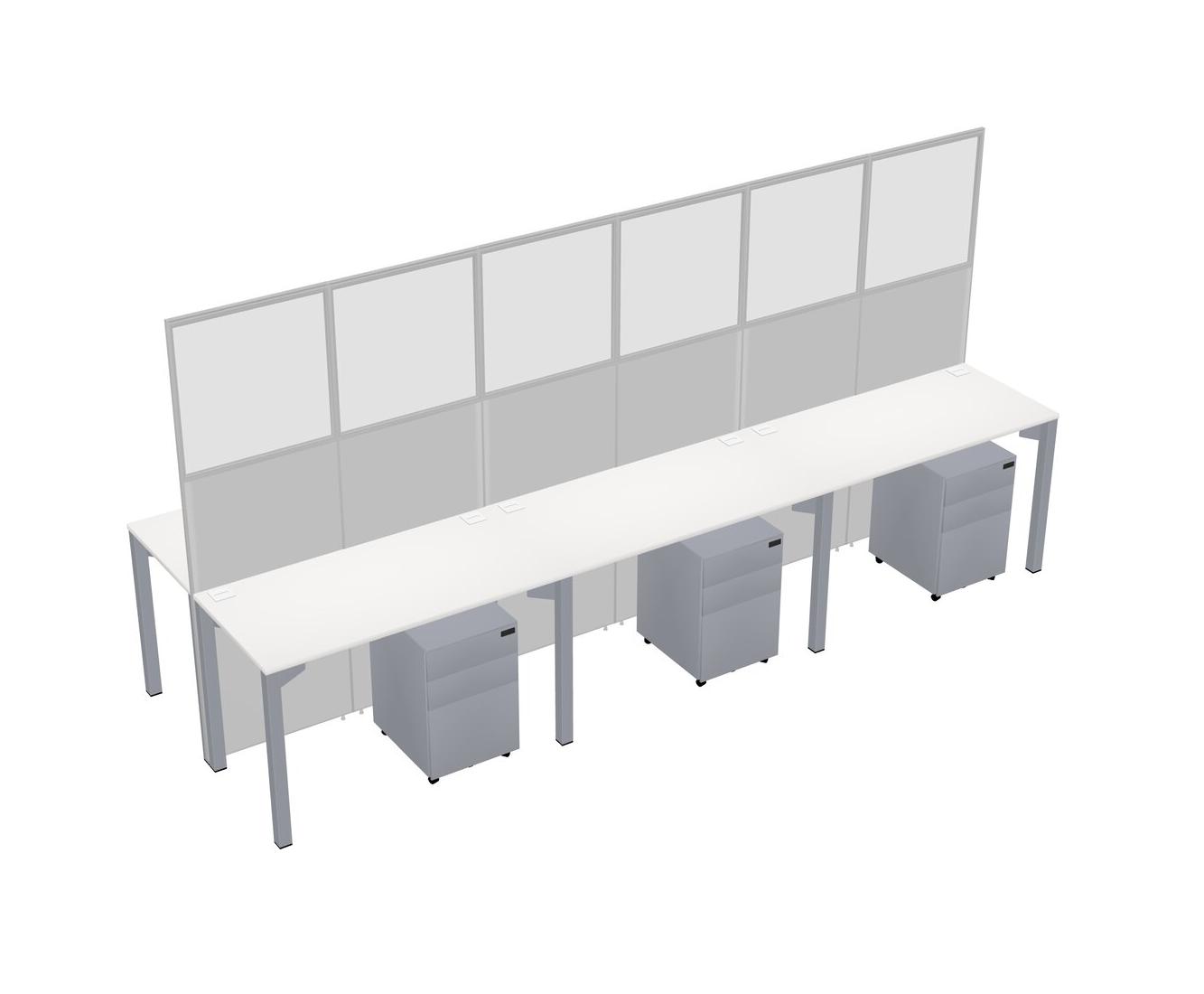 White Shared Rectangular Office Cubicle Panel System With Mobile Drawers For 6 Persons