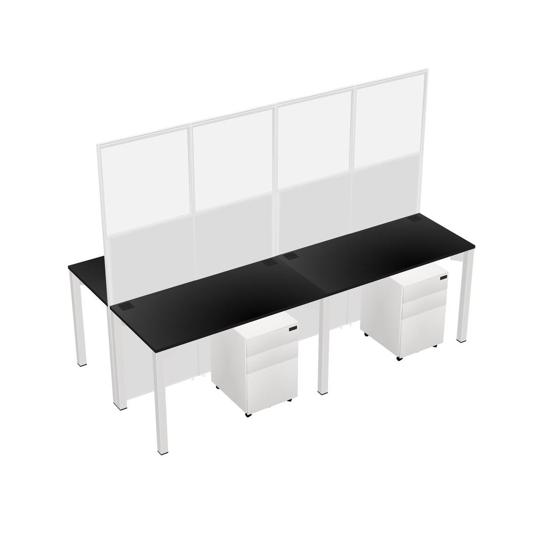 Black Shared Rectangular Office Cubicle Panel System With Mobile Drawers For 4 Persons