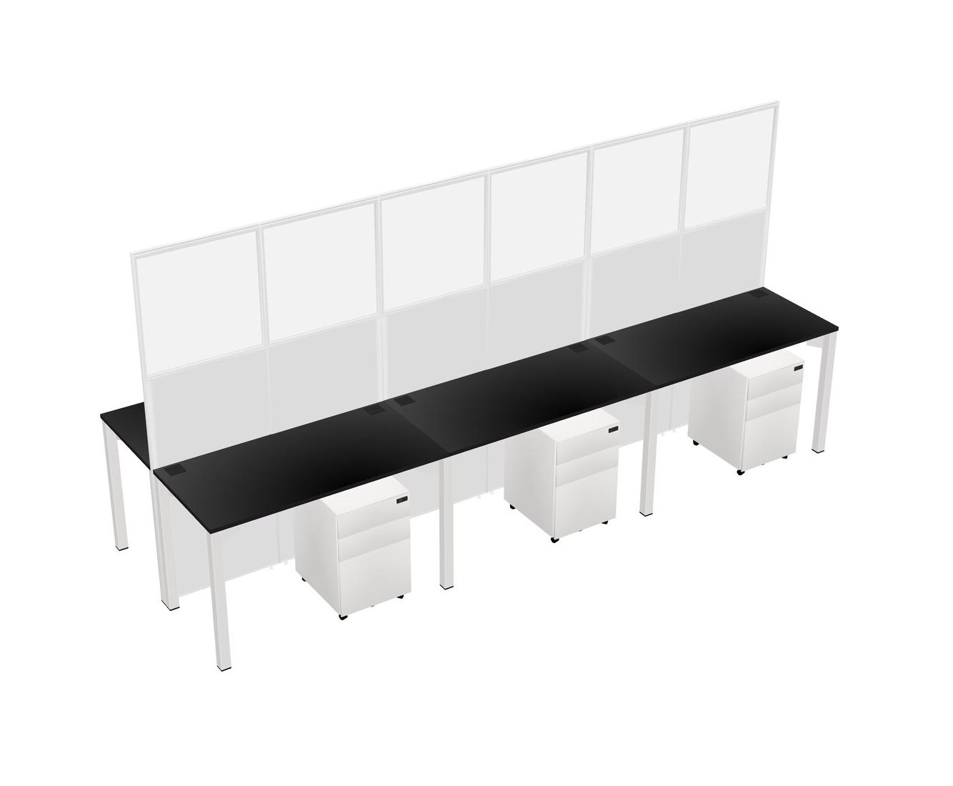 Black Shared Rectangular Office Cubicle Panel System With Mobile Drawers For 6 Persons