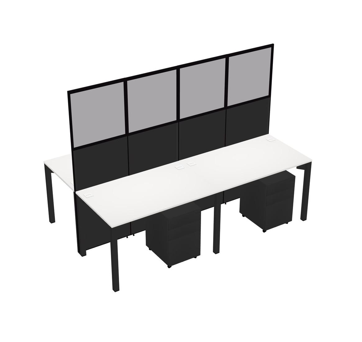 White Shared Rectangular Office Cubicle Panel System With Mobile Drawers For 4 Persons