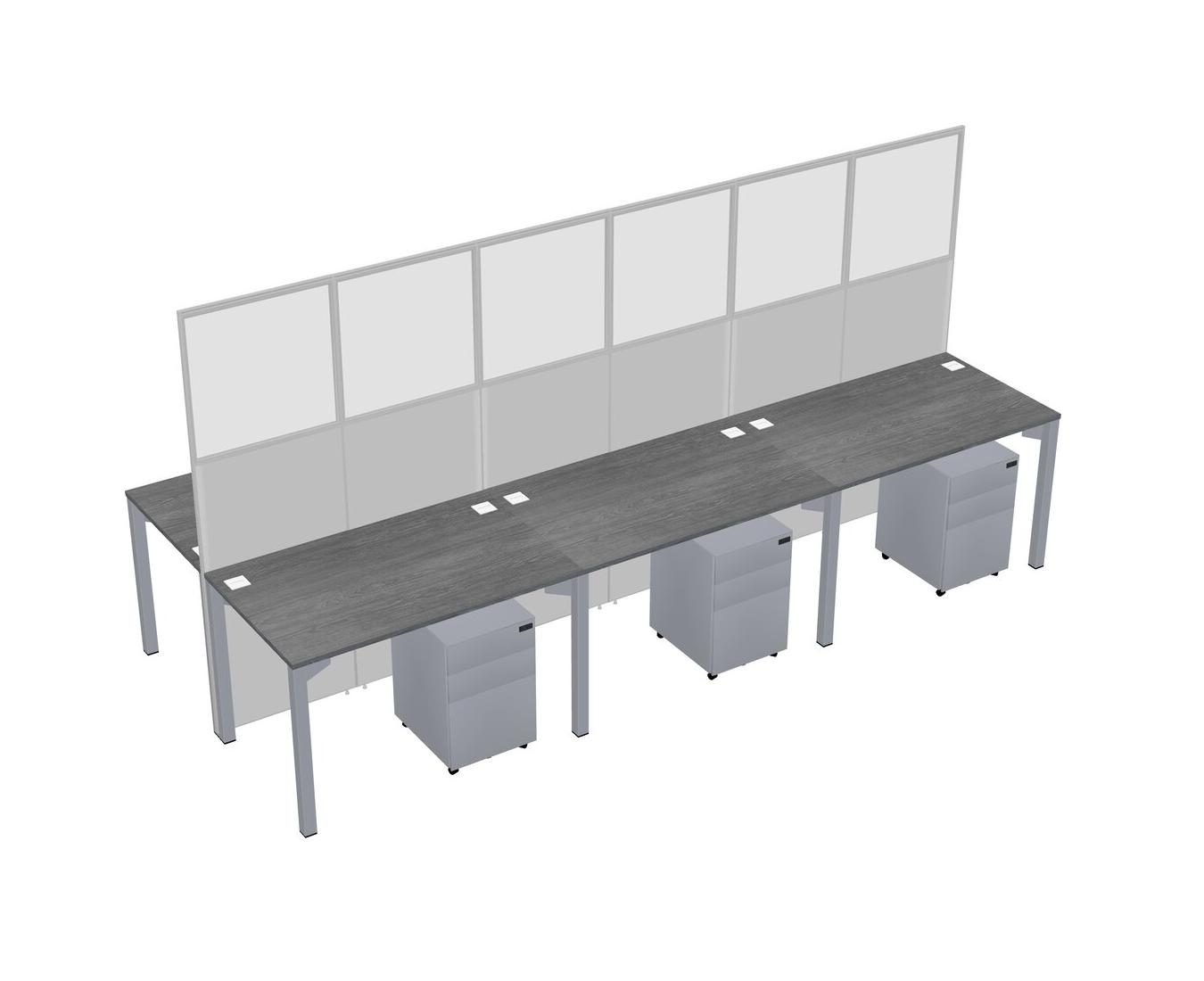 Grey Shared Rectangular Office Cubicle Panel System With Mobile Drawers For 6 Persons