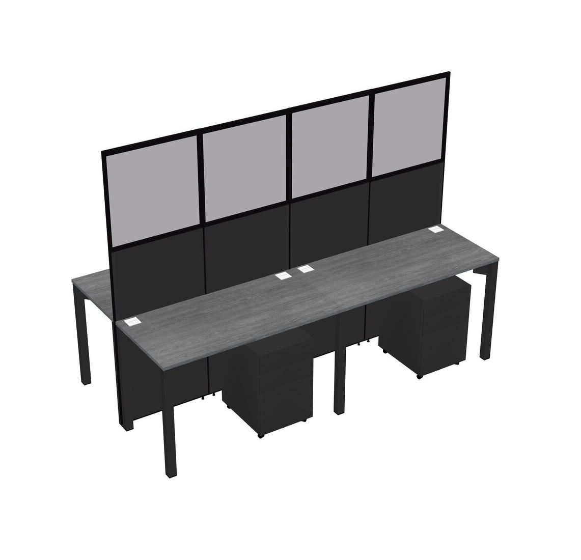 Grey Shared Rectangular Office Cubicle Panel System With Mobile Drawers For 4 Persons
