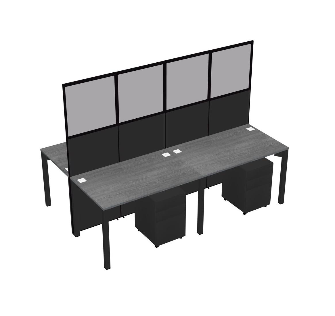 Grey Shared Rectangular Office Cubicle Panel System With Mobile Drawers For 4 Persons