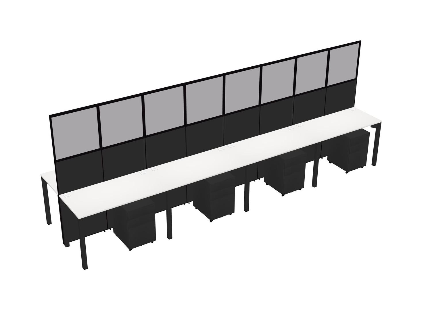 White Shared Rectangular Office Cubicle Panel System With Mobile Drawers For 8 Persons