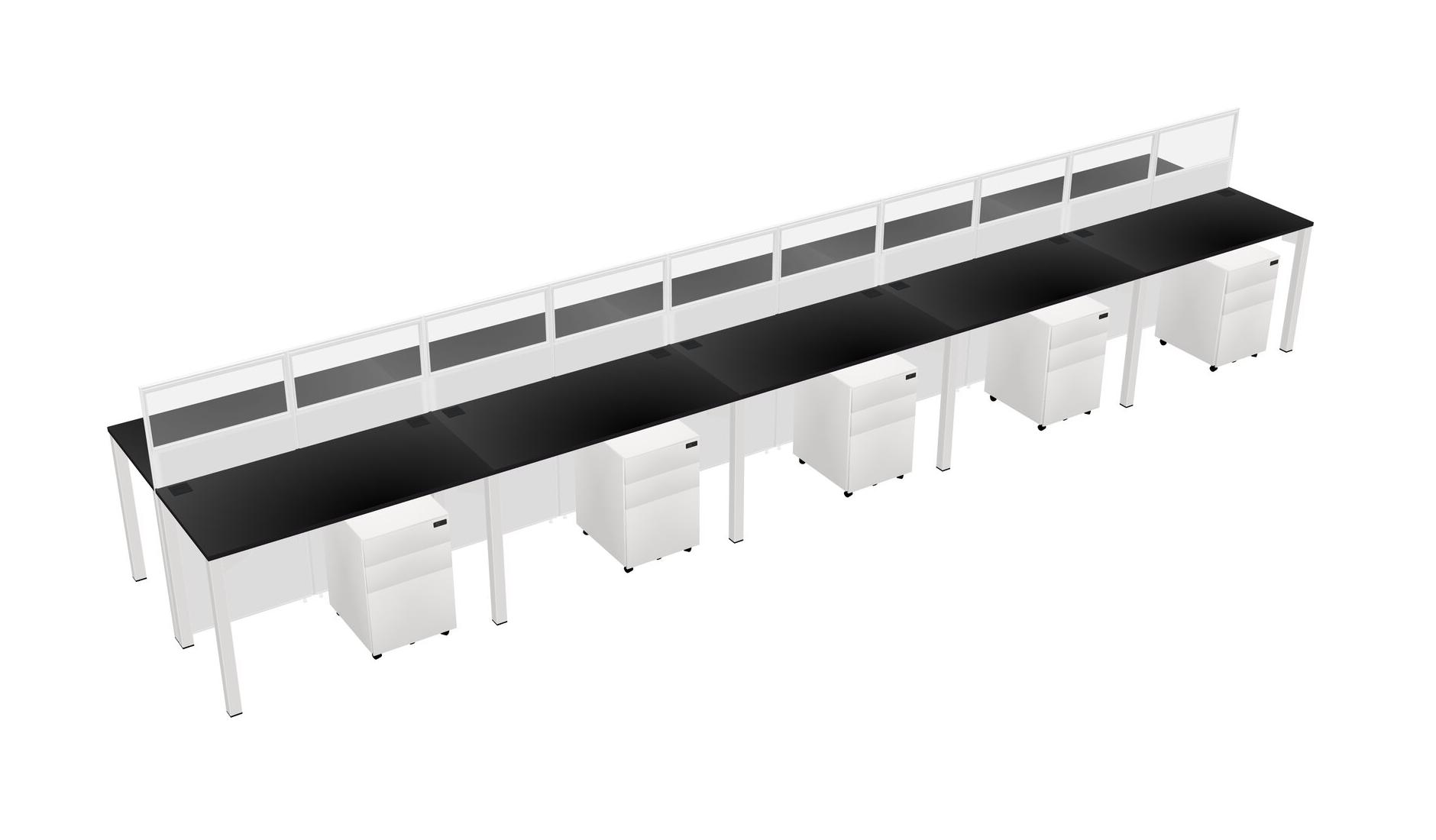 Black Shared Rectangular Office Cubicle Panel System With Mobile Drawers For 10 Persons