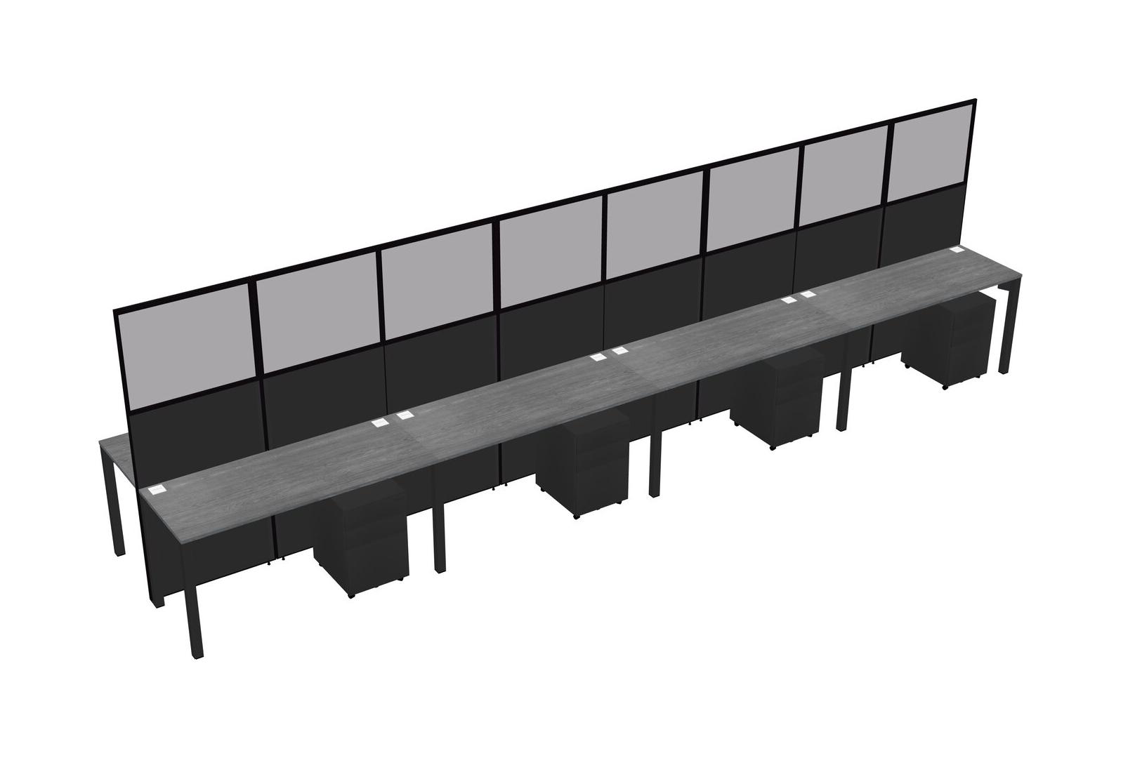 Grey Shared Rectangular Office Cubicle Panel System With Mobile Drawers For 8 Persons