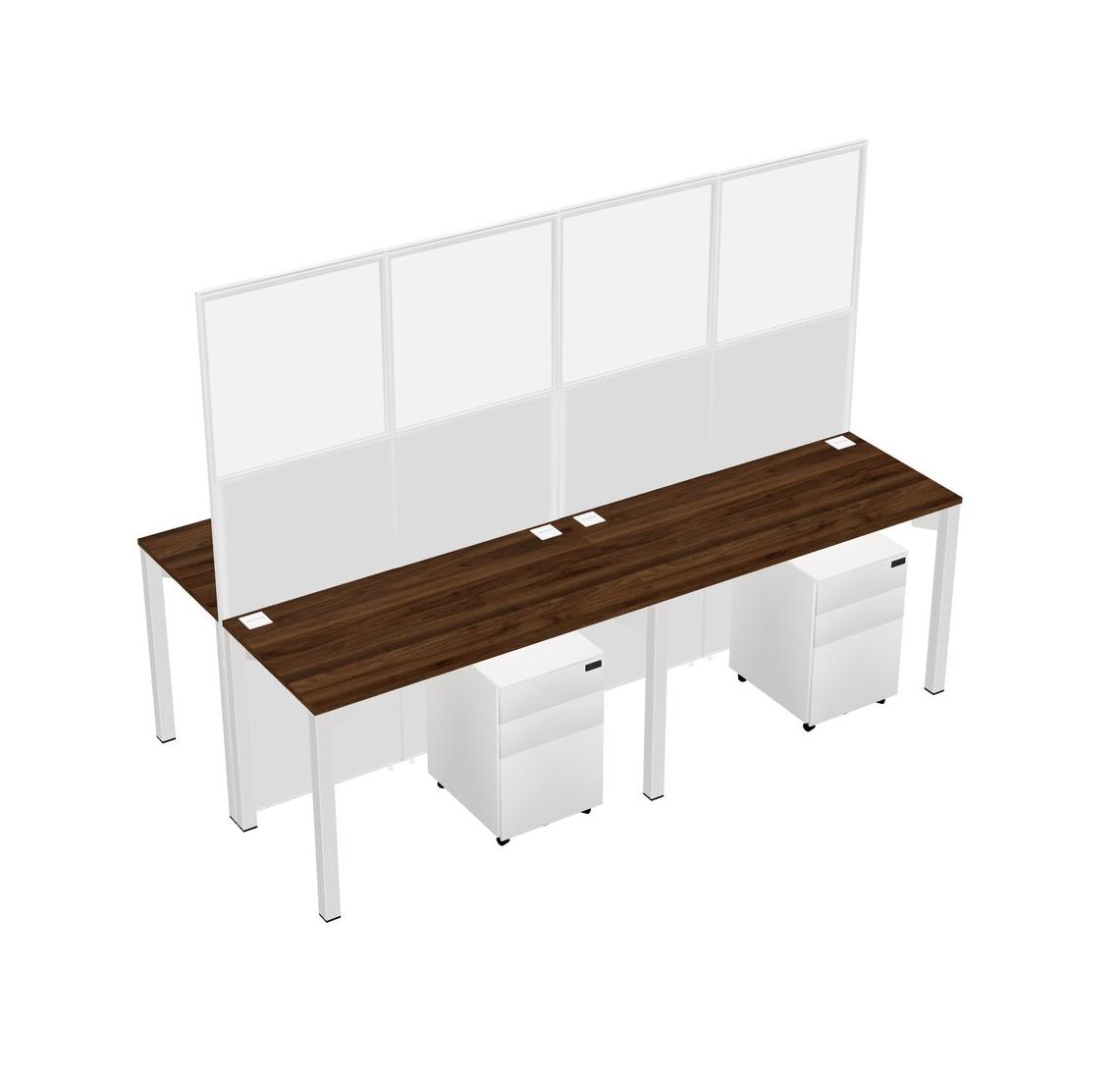 Columbia Walnut Shared Rectangular Office Cubicle Panel System With Mobile Drawers For 4 Persons