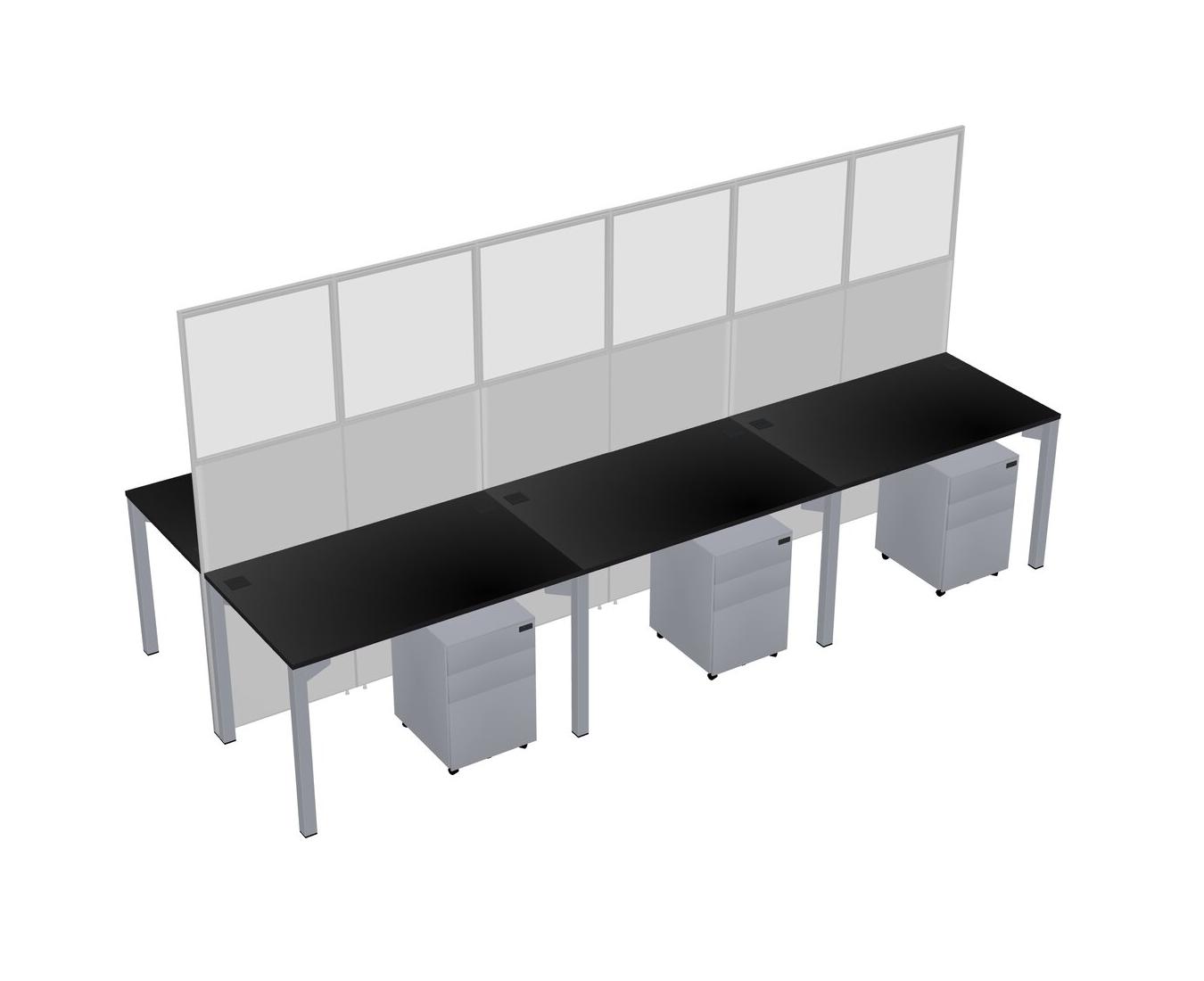 Black Shared Rectangular Office Cubicle Panel System With Mobile Drawers For 6 Persons