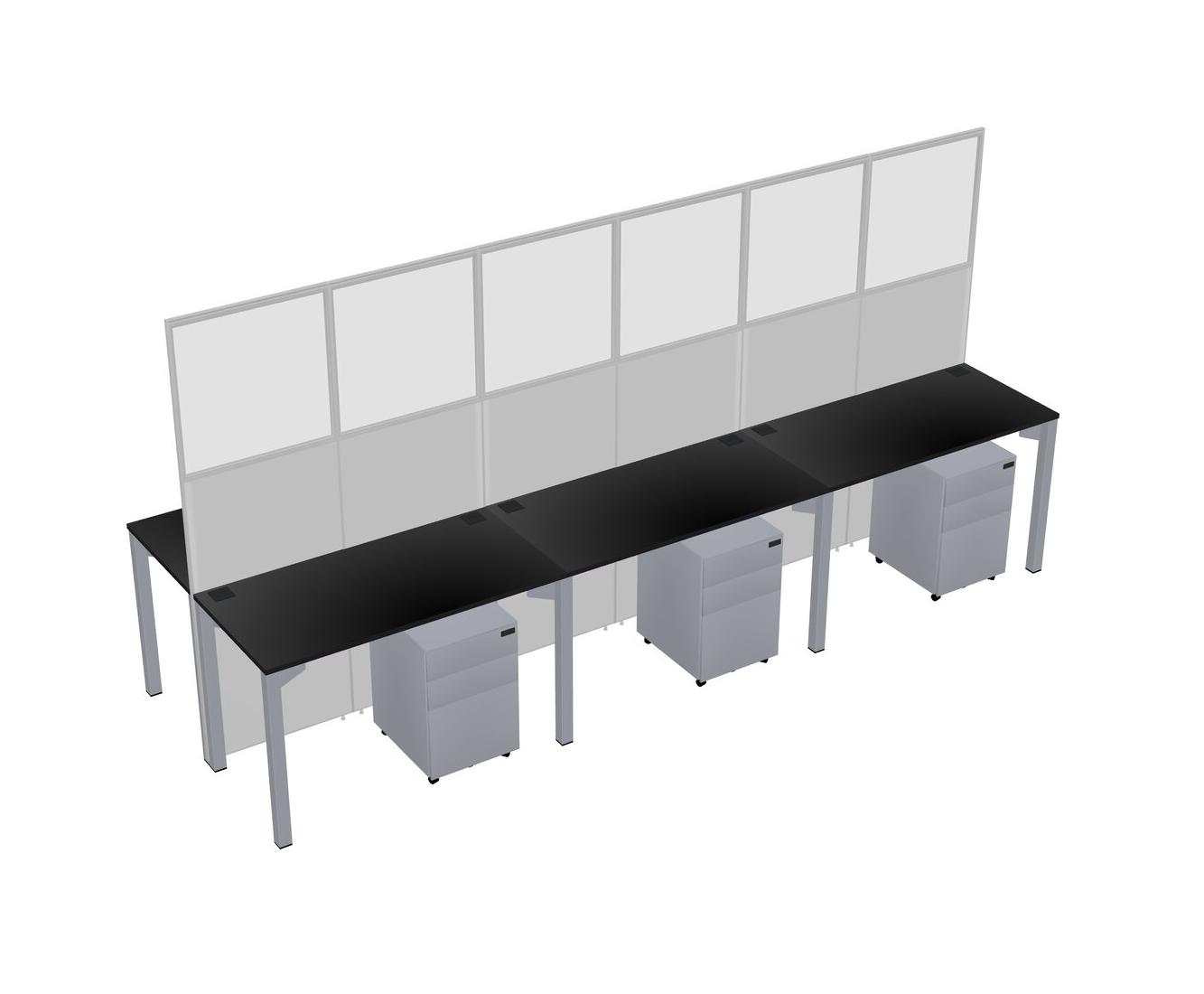 Black Shared Rectangular Office Cubicle Panel System With Mobile Drawers For 6 Persons