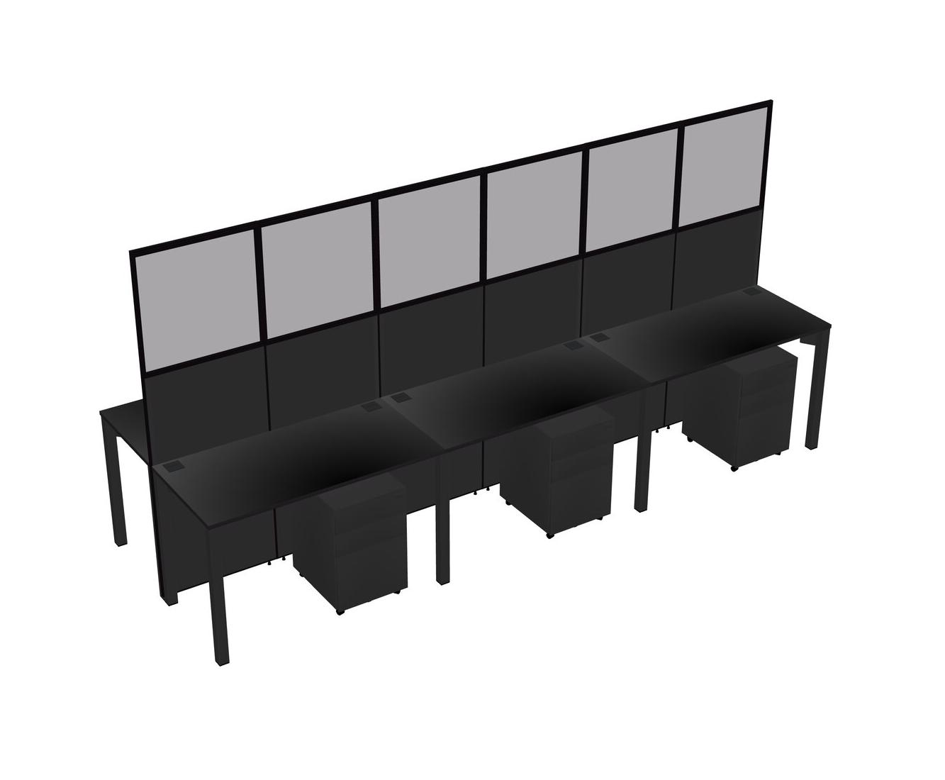 Black Shared Rectangular Office Cubicle Panel System With Mobile Drawers For 6 Persons