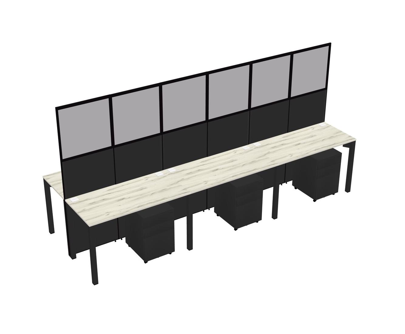 Heinne Holz Shared Rectangular Office Cubicle Panel System With Mobile Drawers For 6 Persons