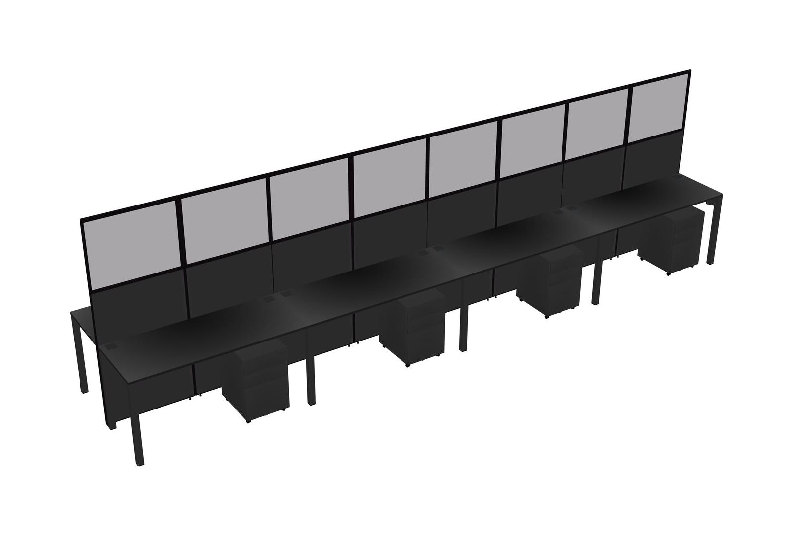 Black Shared Rectangular Office Cubicle Panel System With Mobile Drawers For 8 Persons