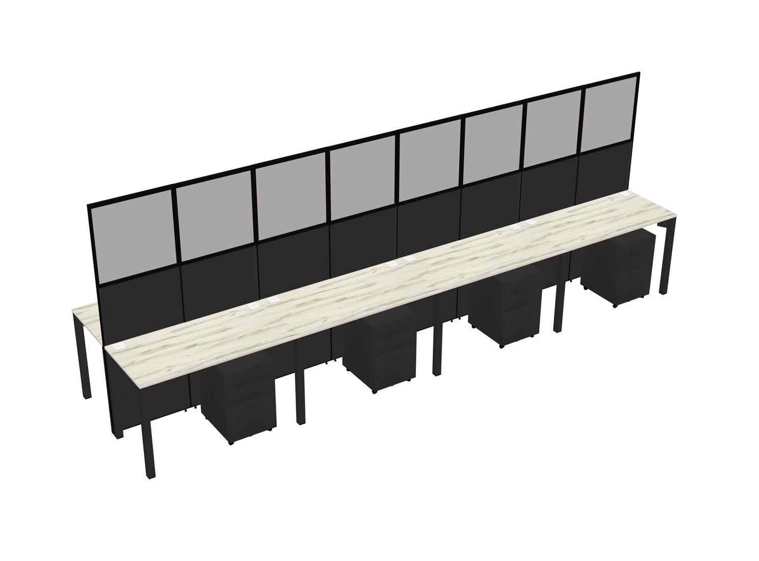 Heinne Holz Shared Rectangular Office Cubicle Panel System With Mobile Drawers For 8 Persons