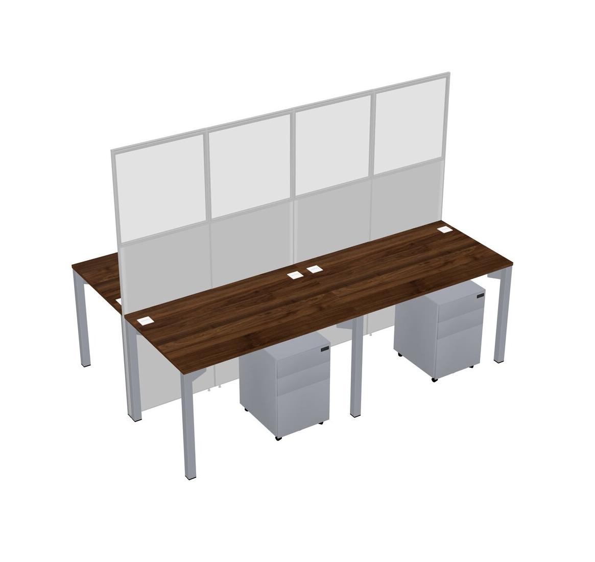 Columbia Walnut Shared Rectangular Office Cubicle Panel System With Mobile Drawers For 4 Persons
