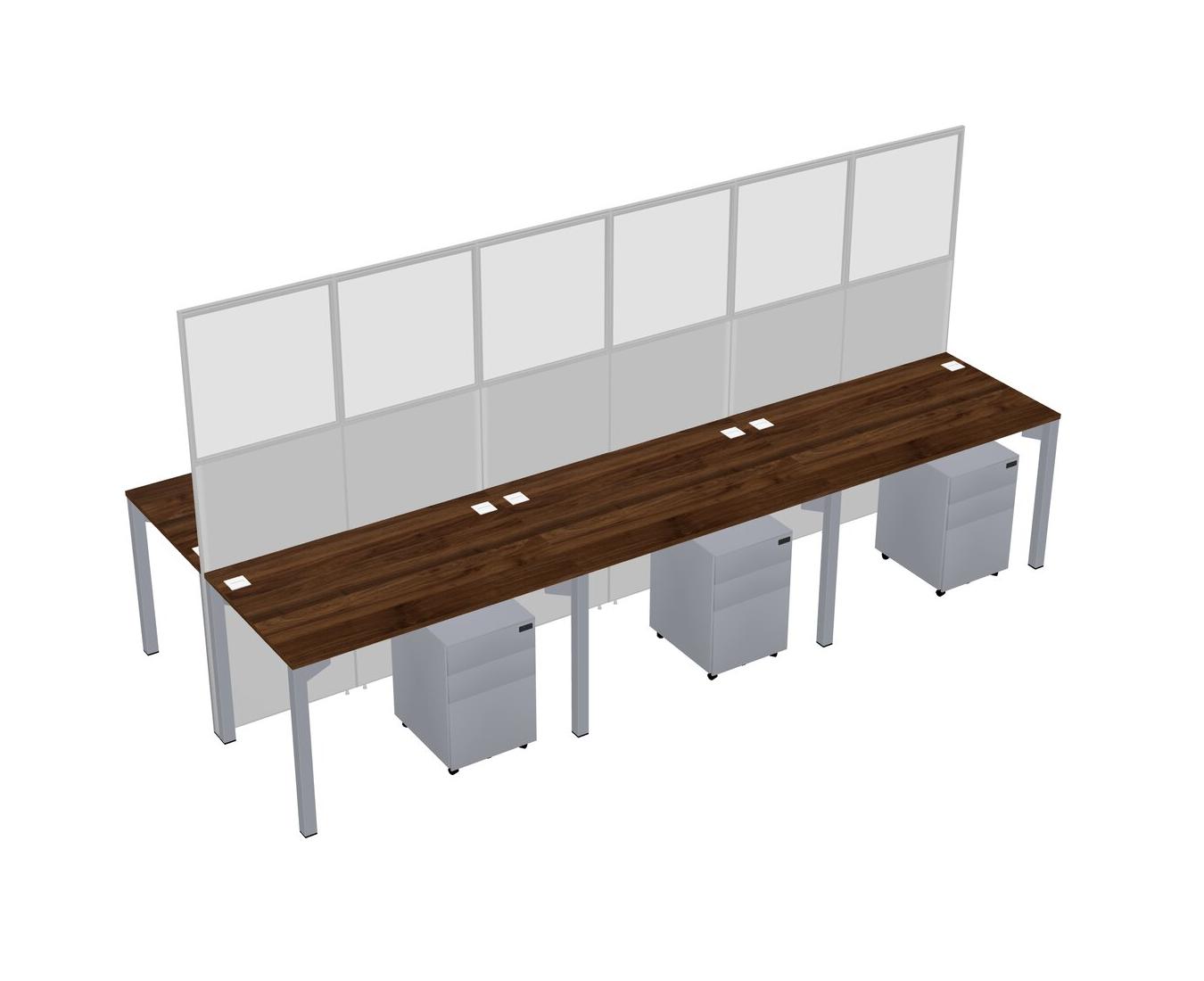 Columbia Walnut Shared Rectangular Office Cubicle Panel System With Mobile Drawers For 6 Persons