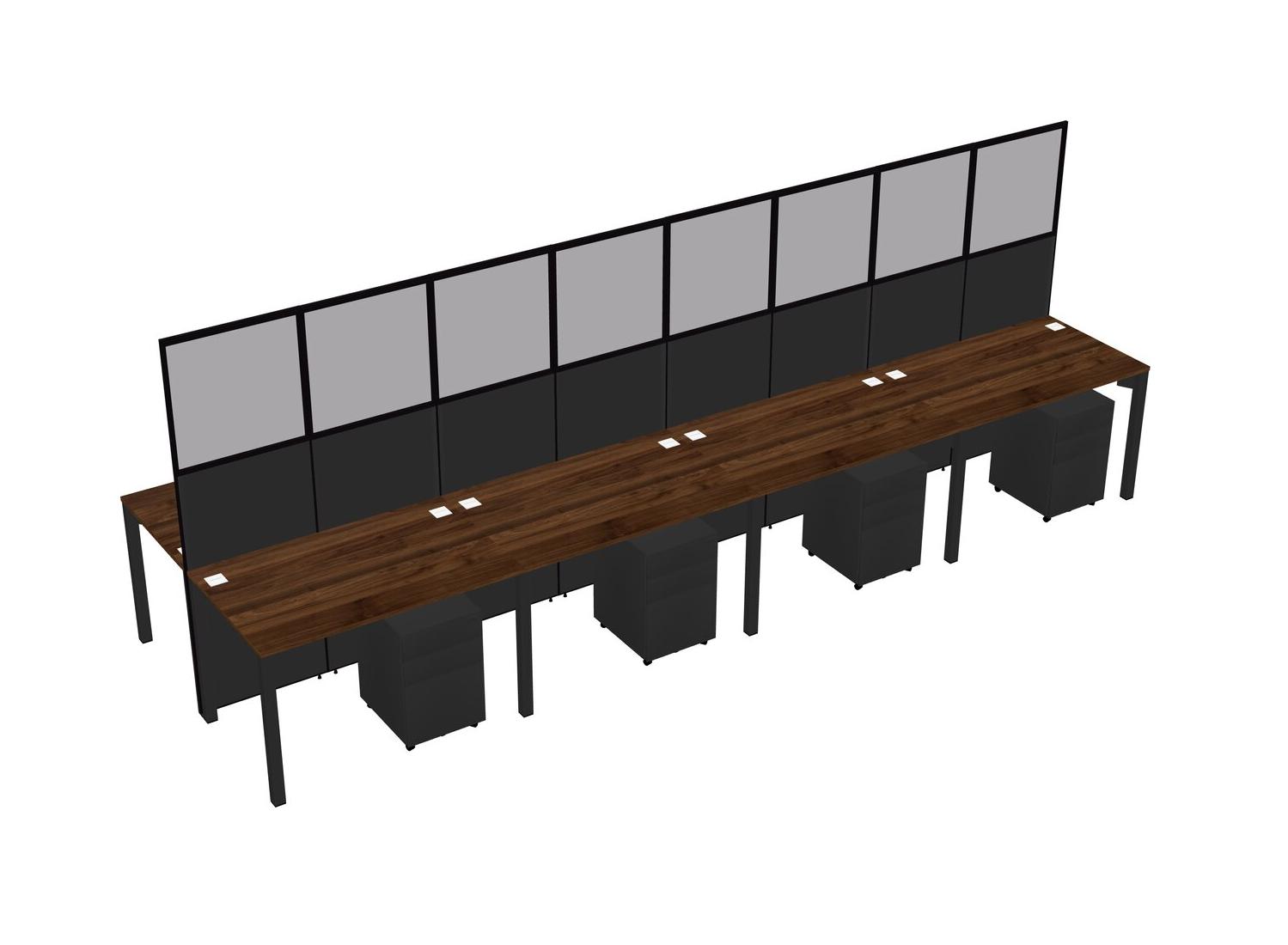 Columbia Walnut Shared Rectangular Office Cubicle Panel System With Mobile Drawers For 8 Persons