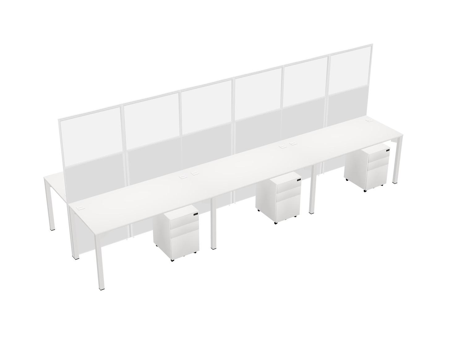 White Shared Rectangular Office Cubicle Panel System With Mobile Drawers For 6 Persons