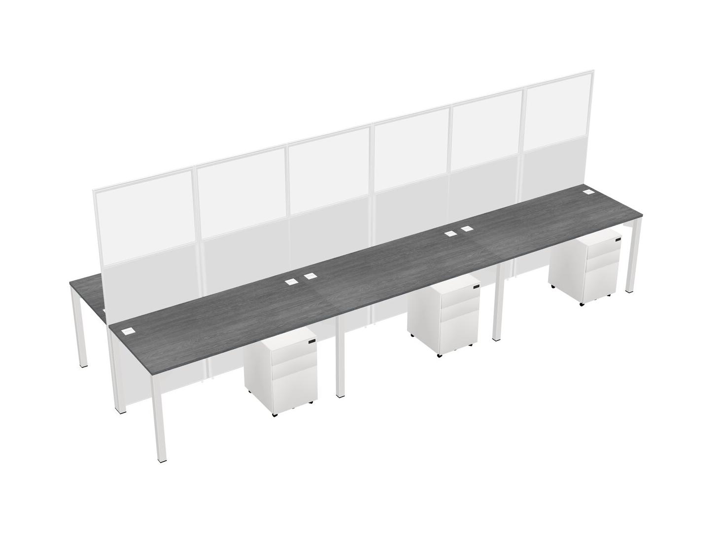 Grey Shared Rectangular Office Cubicle Panel System With Mobile Drawers For 6 Persons