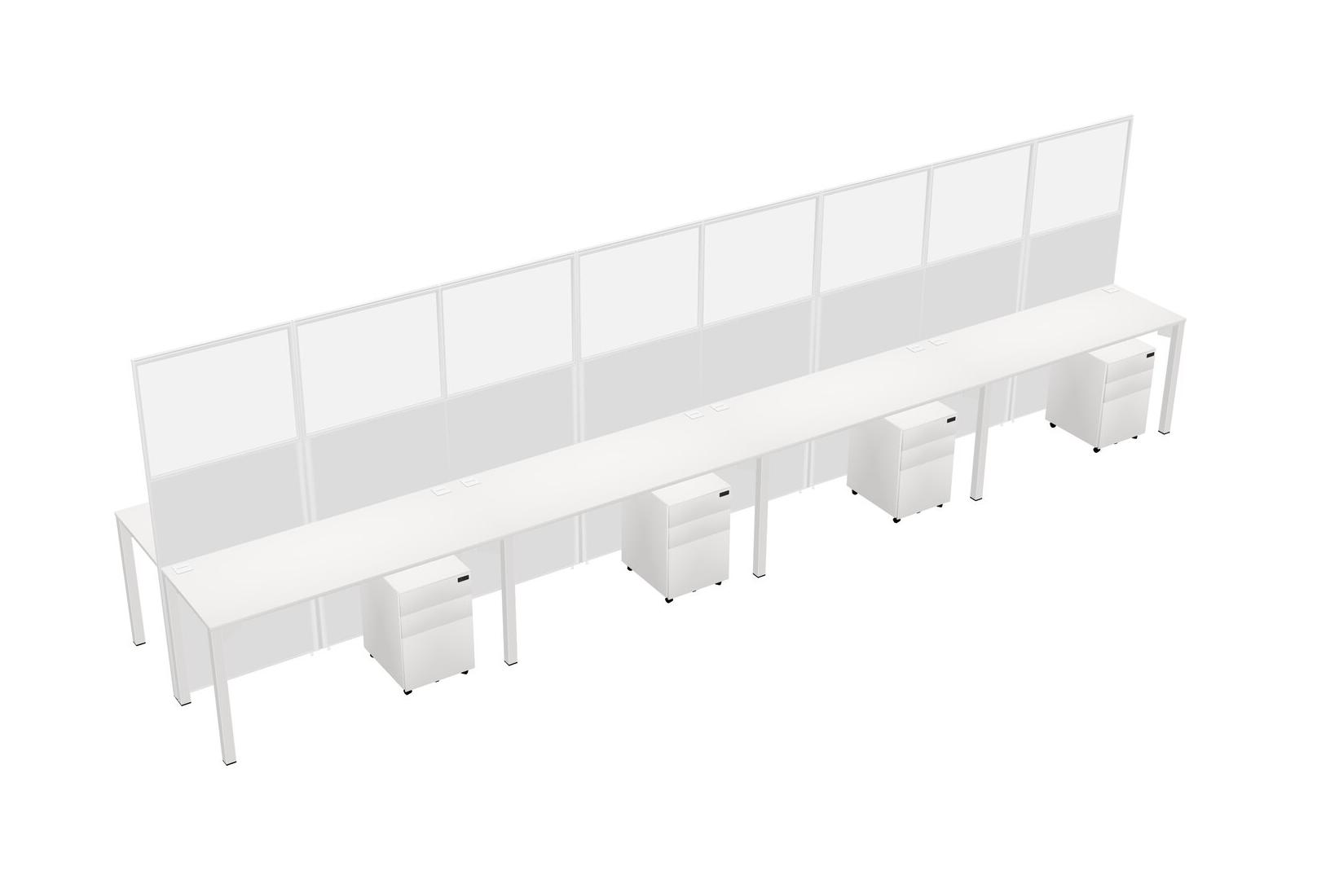 White Shared Rectangular Office Cubicle Panel System With Mobile Drawers For 8 Persons
