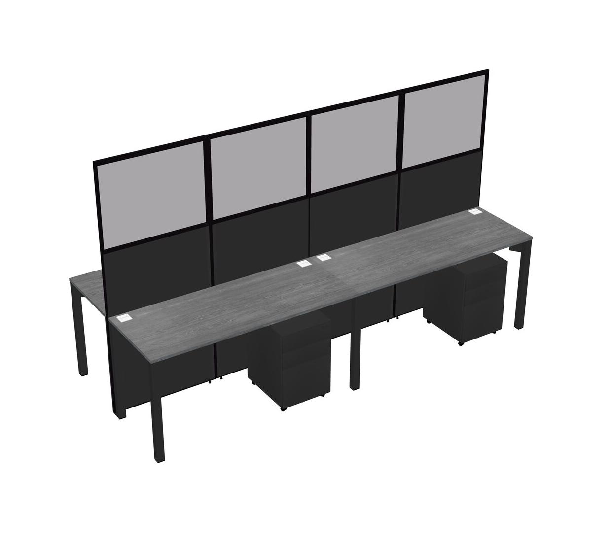 Grey Shared Rectangular Office Cubicle Panel System With Mobile Drawers For 4 Persons