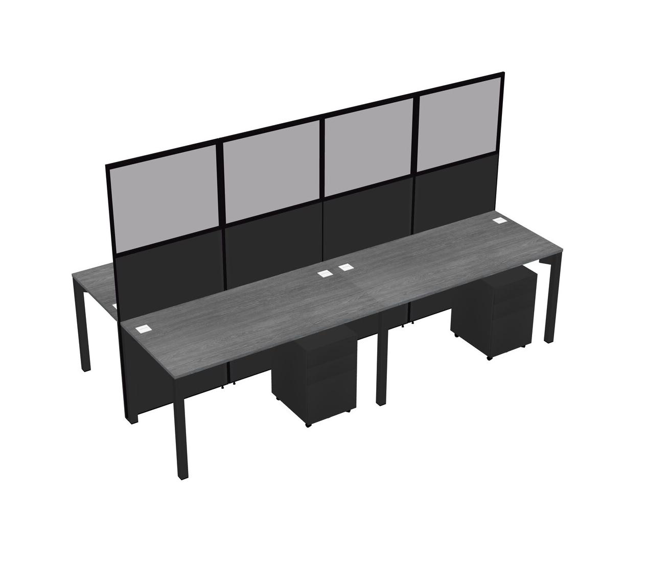 Grey Shared Rectangular Office Cubicle Panel System With Mobile Drawers For 4 Persons