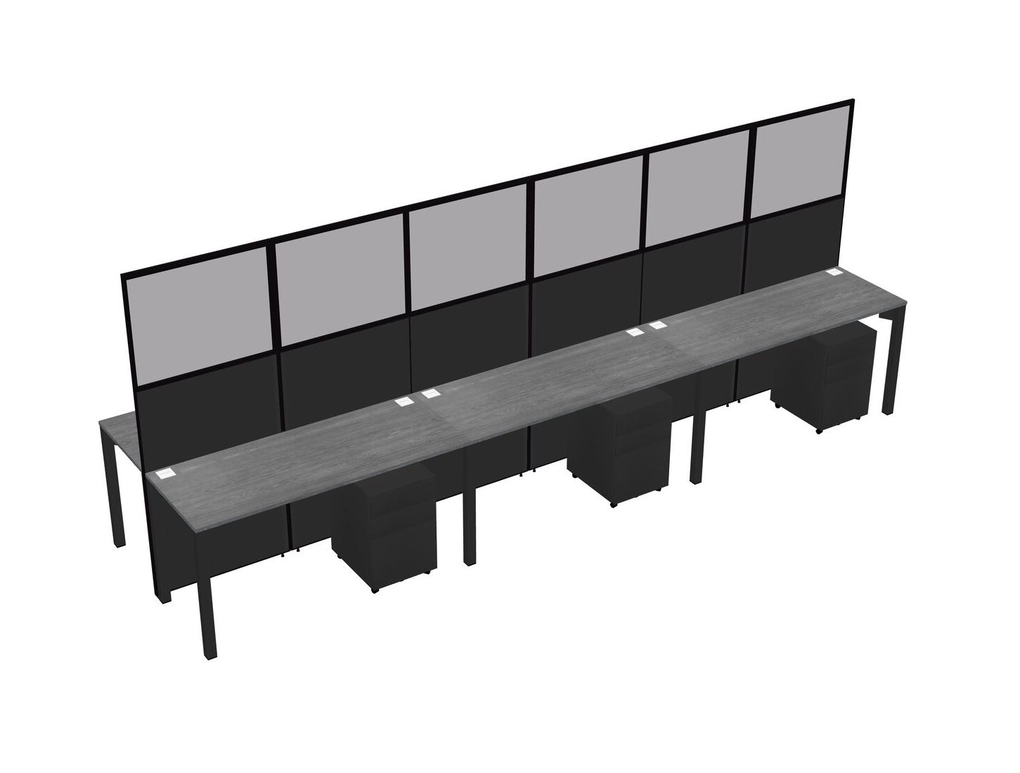 Grey Shared Rectangular Office Cubicle Panel System With Mobile Drawers For 6 Persons