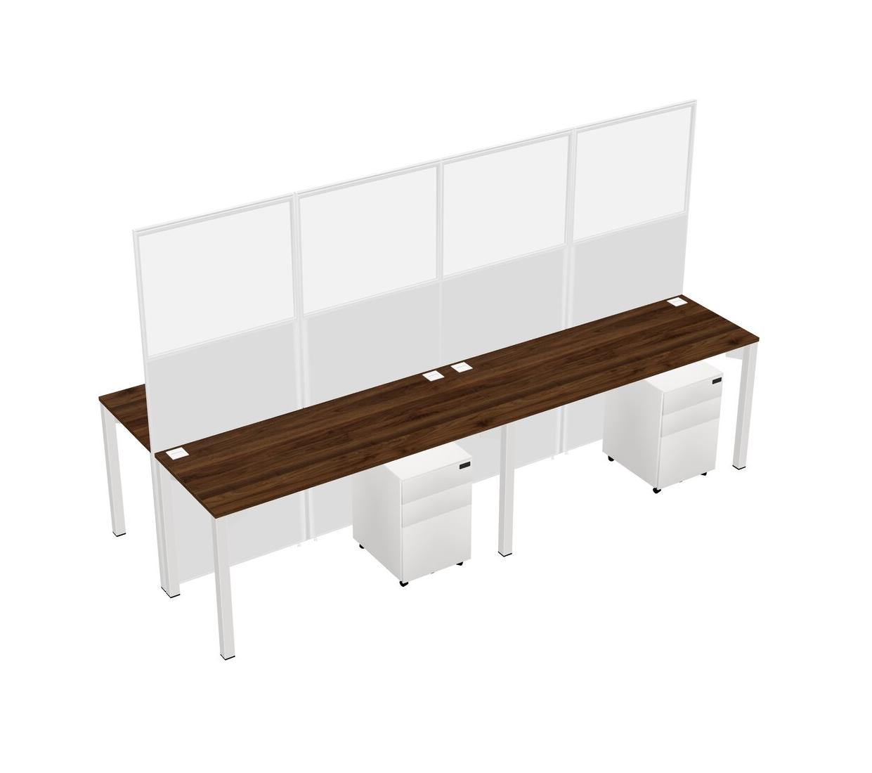Columbia Walnut Shared Rectangular Office Cubicle Panel System With Mobile Drawers For 4 Persons
