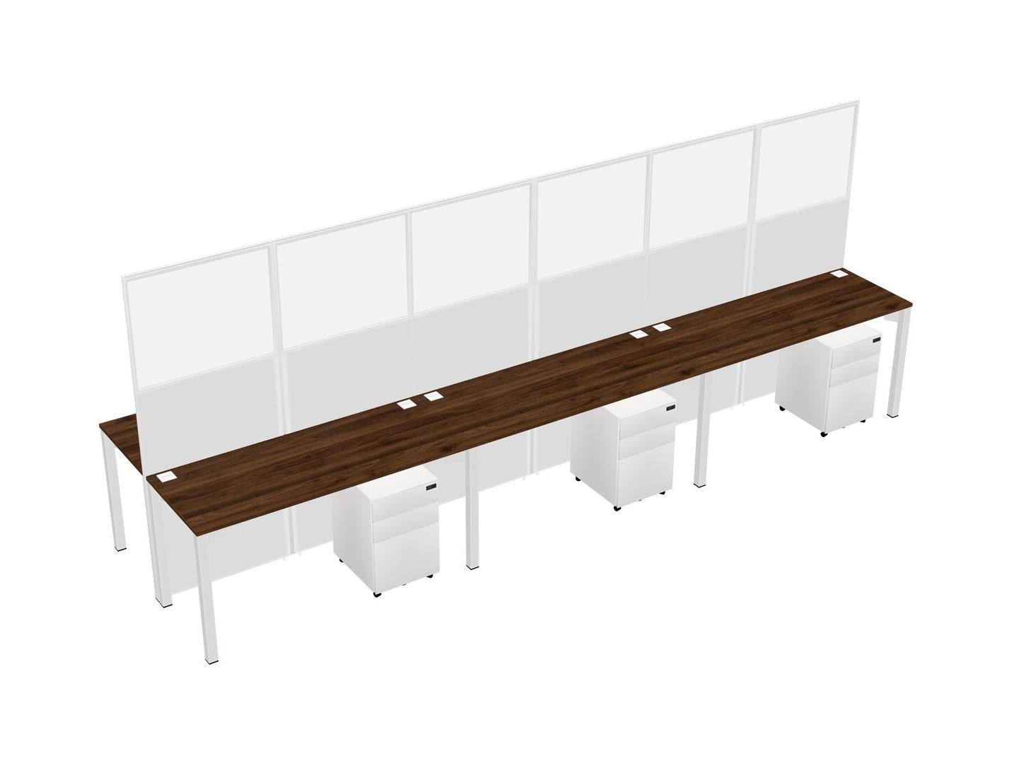 Columbia Walnut Shared Rectangular Office Cubicle Panel System With Mobile Drawers For 6 Persons