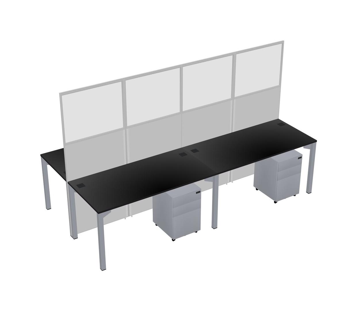 Black Shared Rectangular Office Cubicle Panel System With Mobile Drawers For 4 Persons