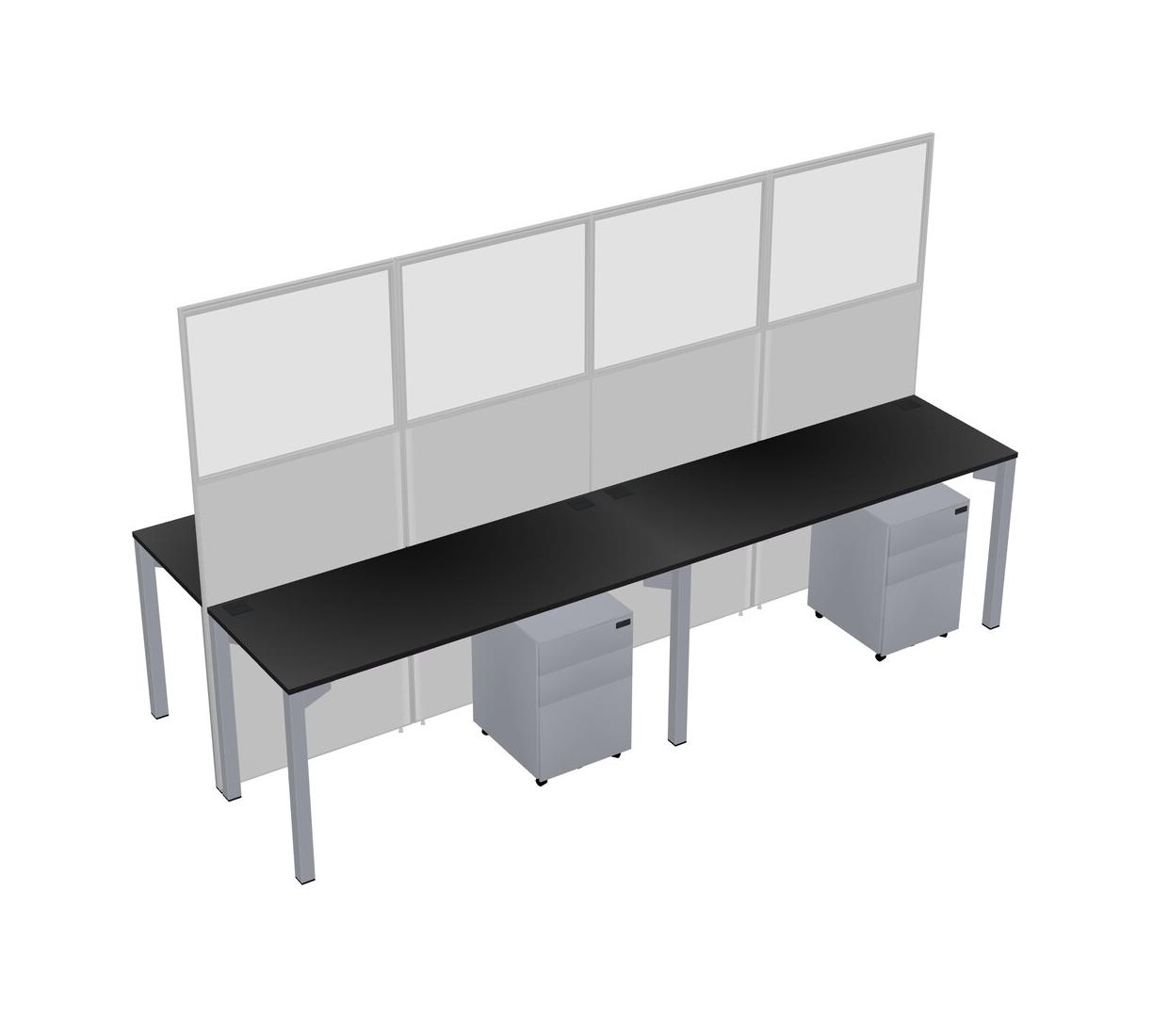 Black Shared Rectangular Office Cubicle Panel System With Mobile Drawers For 4 Persons