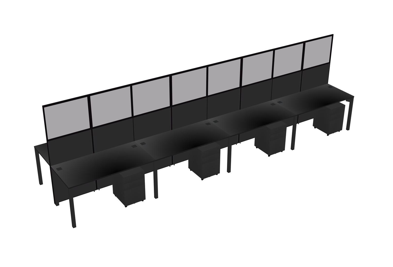 Black Shared Rectangular Office Cubicle Panel System With Mobile Drawers For 8 Persons