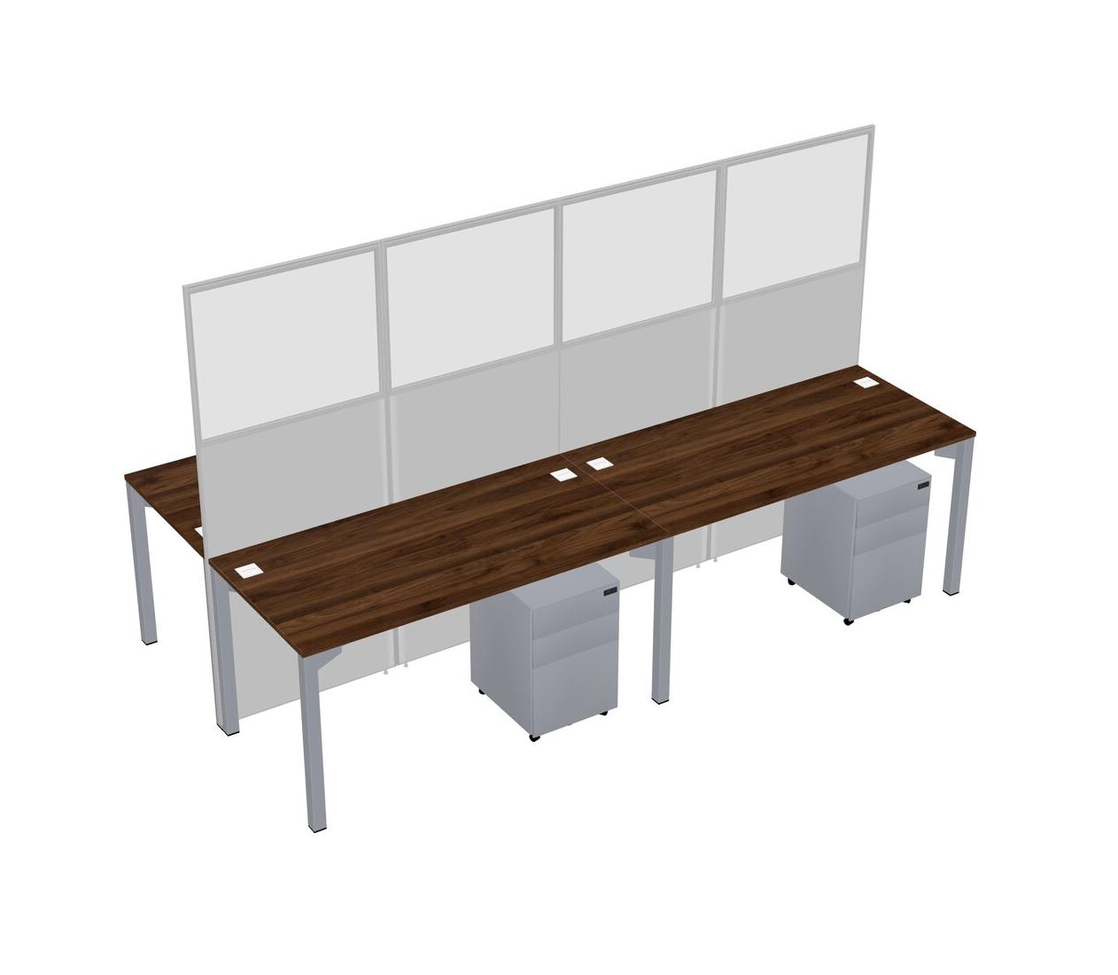Columbia Walnut Shared Rectangular Office Cubicle Panel System With Mobile Drawers For 4 Persons