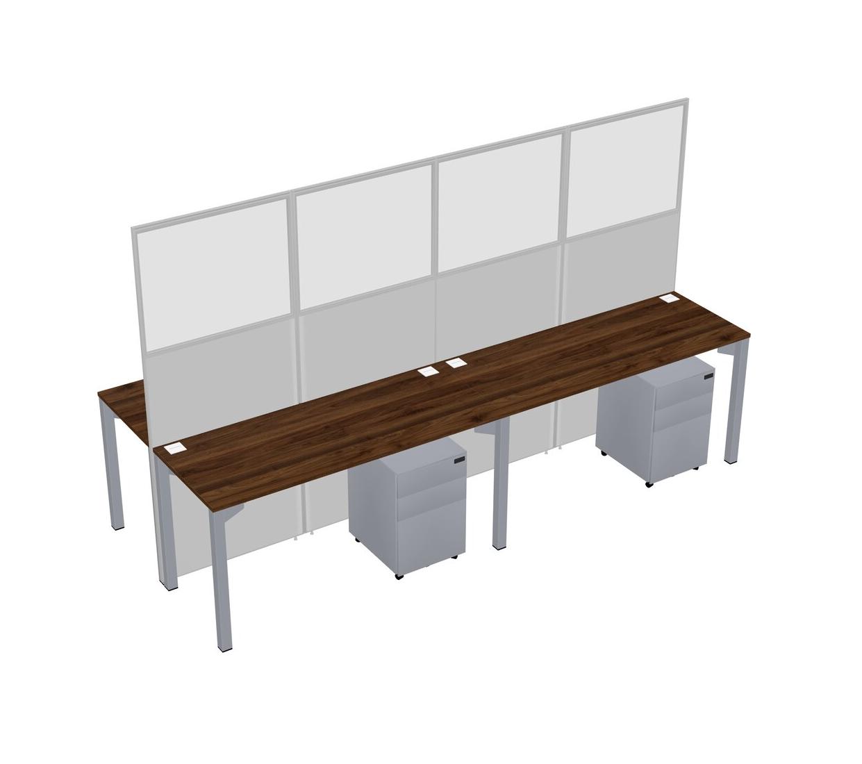 Columbia Walnut Shared Rectangular Office Cubicle Panel System With Mobile Drawers For 4 Persons