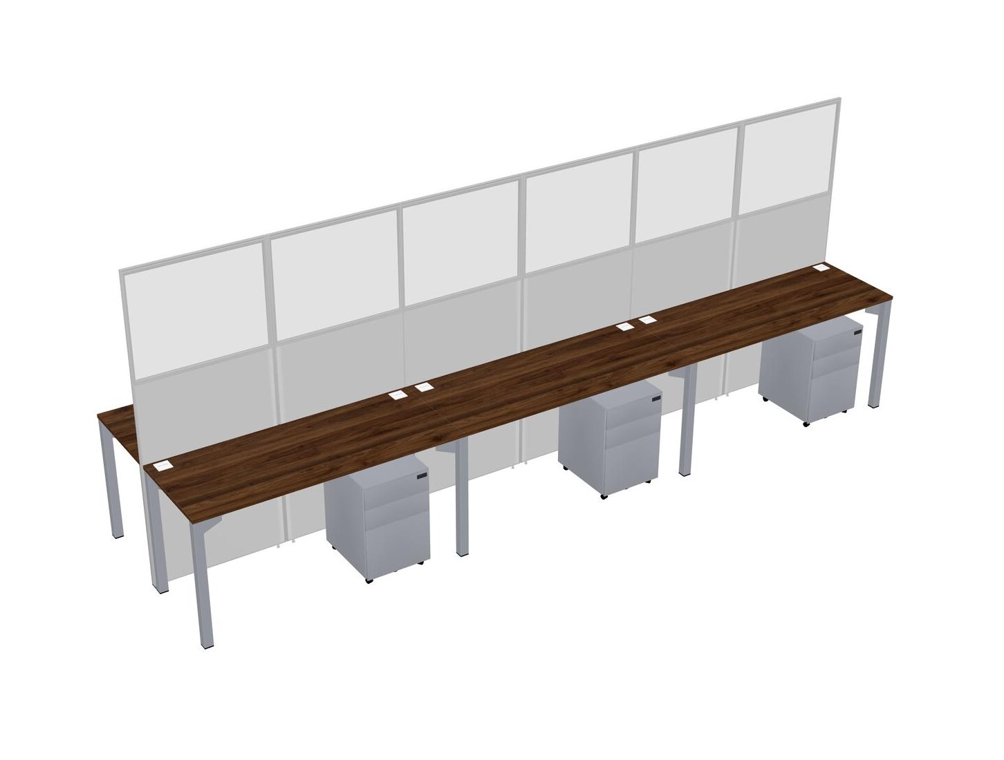 Columbia Walnut Shared Rectangular Office Cubicle Panel System With Mobile Drawers For 6 Persons