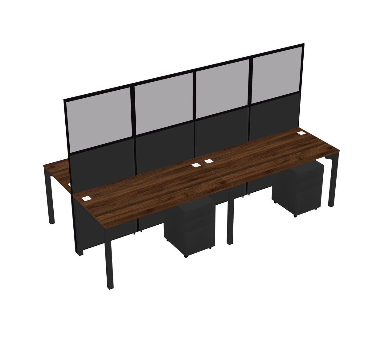 Columbia Walnut Shared Rectangular Office Cubicle Panel System With Mobile Drawers For 4 Persons