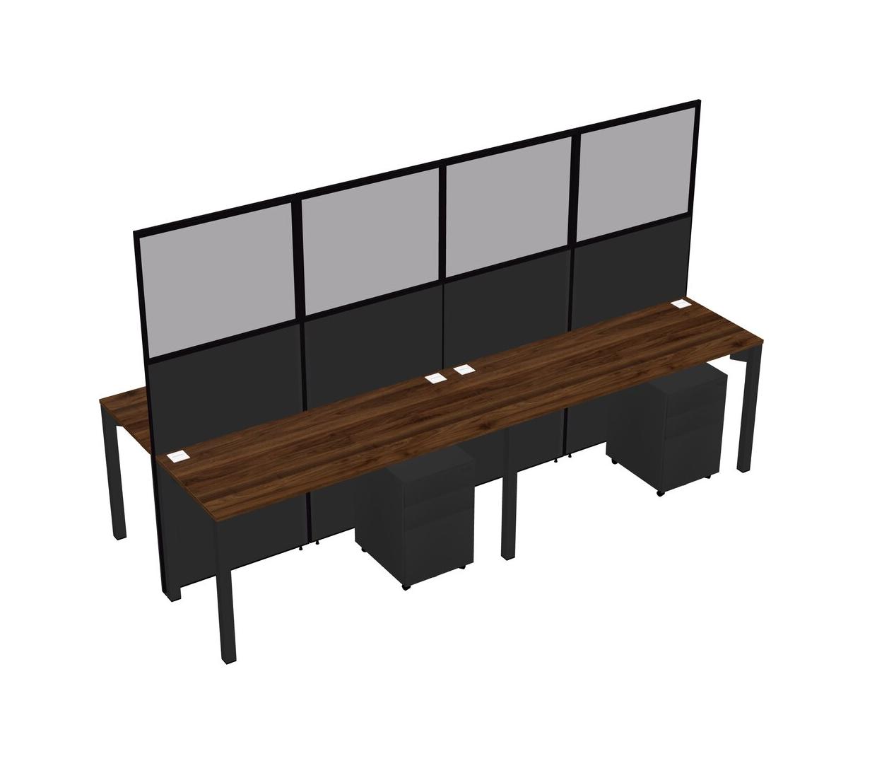 Columbia Walnut Shared Rectangular Office Cubicle Panel System With Mobile Drawers For 4 Persons