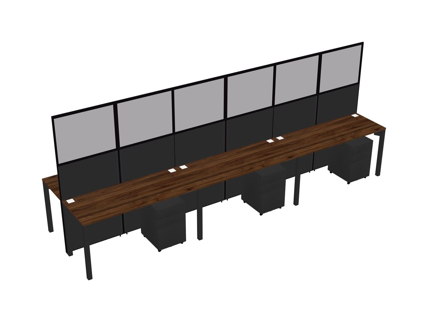 Columbia Walnut Shared Rectangular Office Cubicle Panel System With Mobile Drawers For 6 Persons