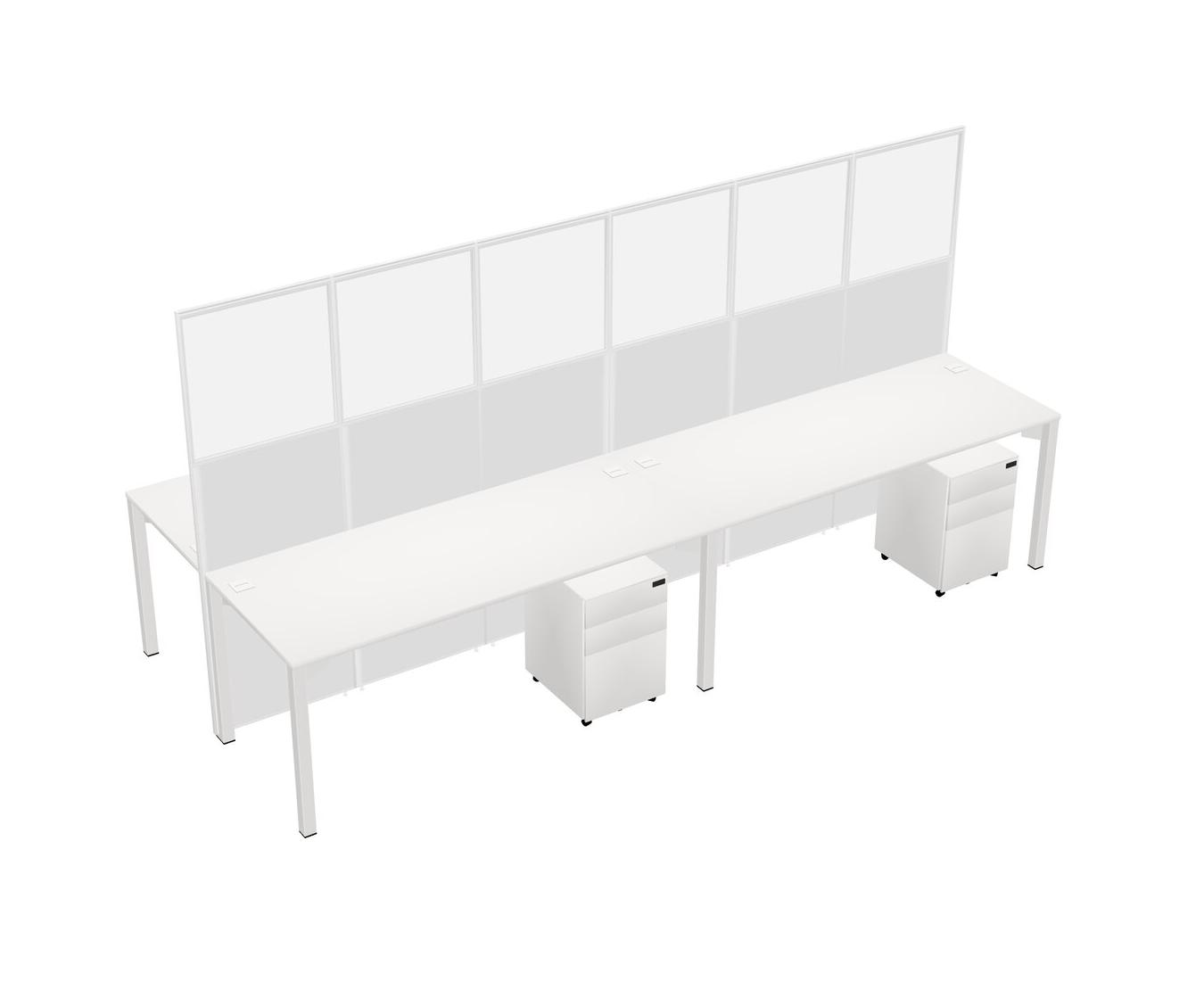 White Shared Rectangular Office Cubicle Panel System With Mobile Drawers For 4 Persons