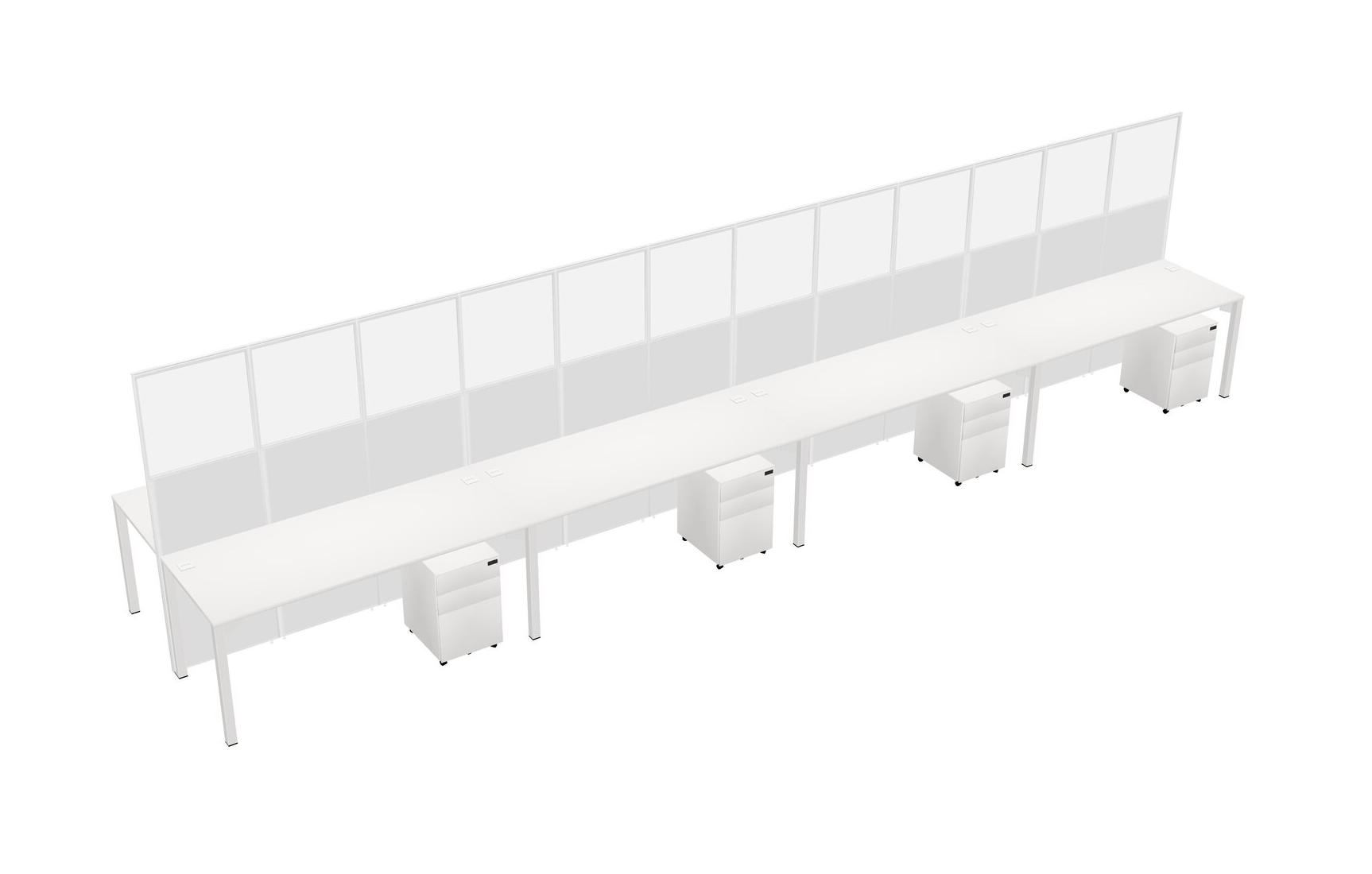 White Shared Rectangular Office Cubicle Panel System With Mobile Drawers For 8 Persons