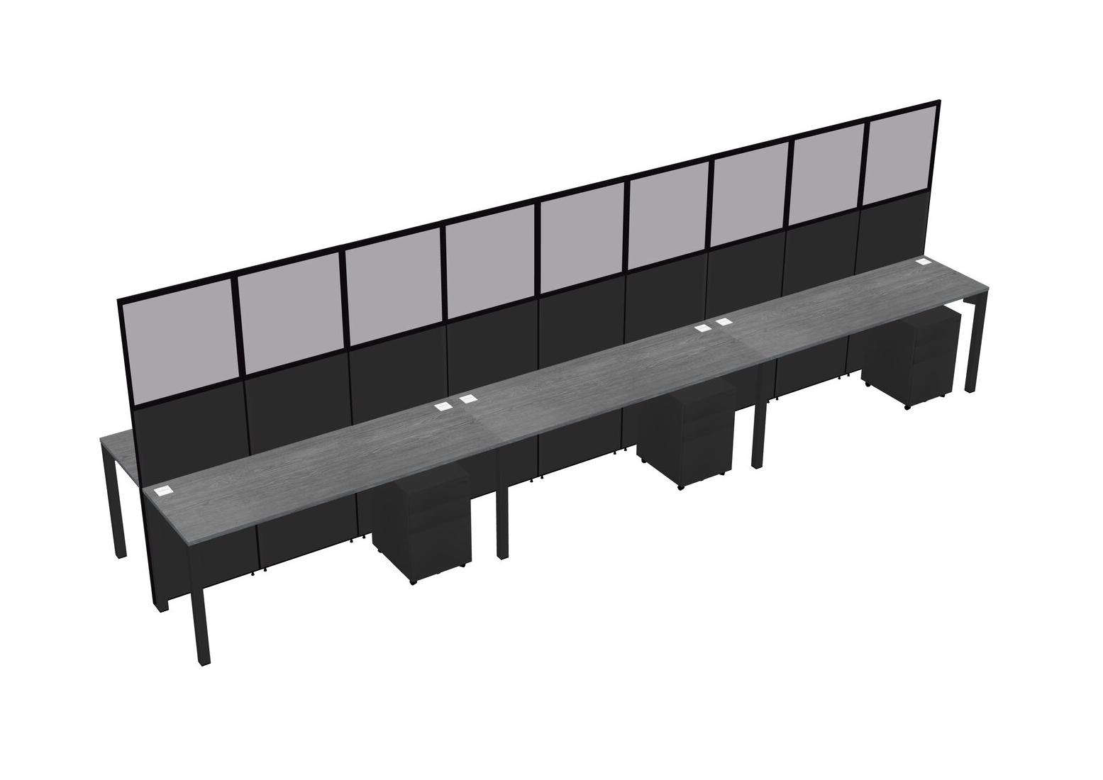 Grey Shared Rectangular Office Cubicle Panel System With Mobile Drawers For 6 Persons