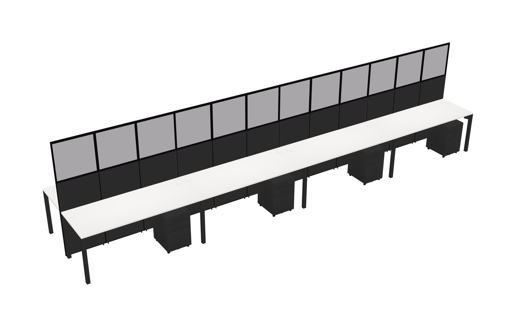 White Shared Rectangular Office Cubicle Panel System With Mobile Drawers For 8 Persons