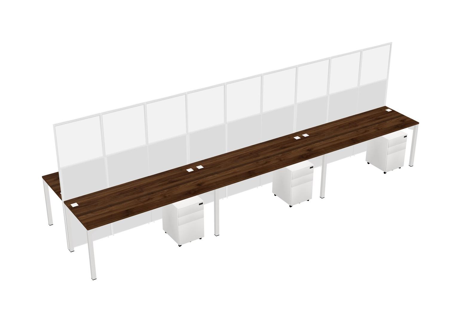 Columbia Walnut Shared Rectangular Office Cubicle Panel System With Mobile Drawers For 6 Persons