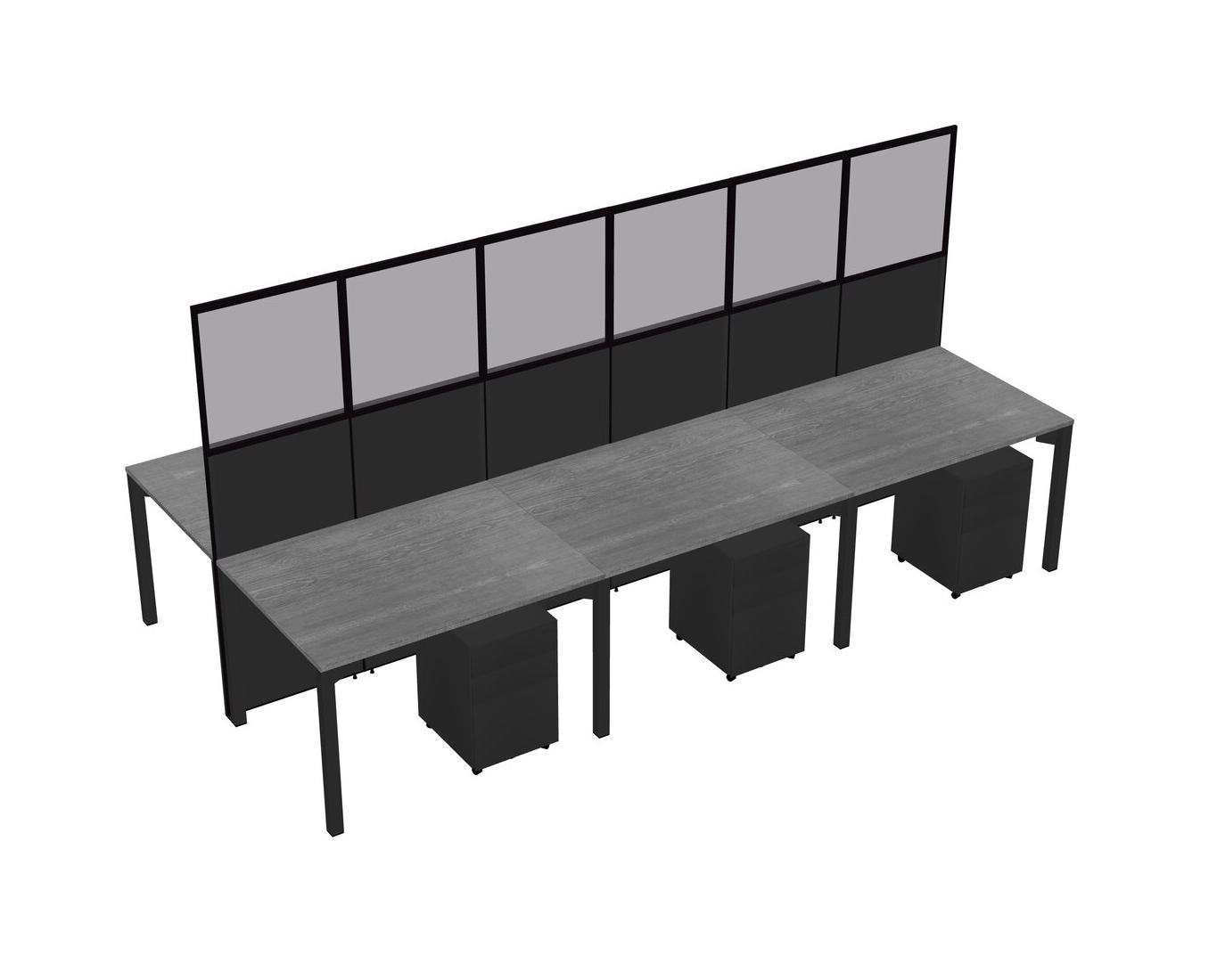 Grey Shared Rectangular Office Cubicle Panel System With Mobile Drawers For 6 Persons