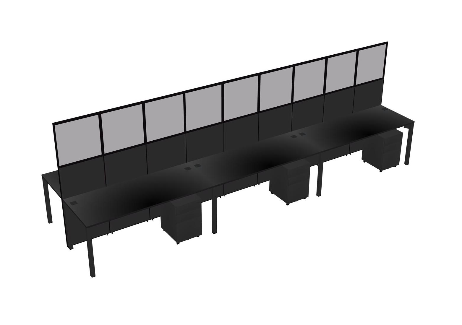 Black Shared Rectangular Office Cubicle Panel System With Mobile Drawers For 6 Persons