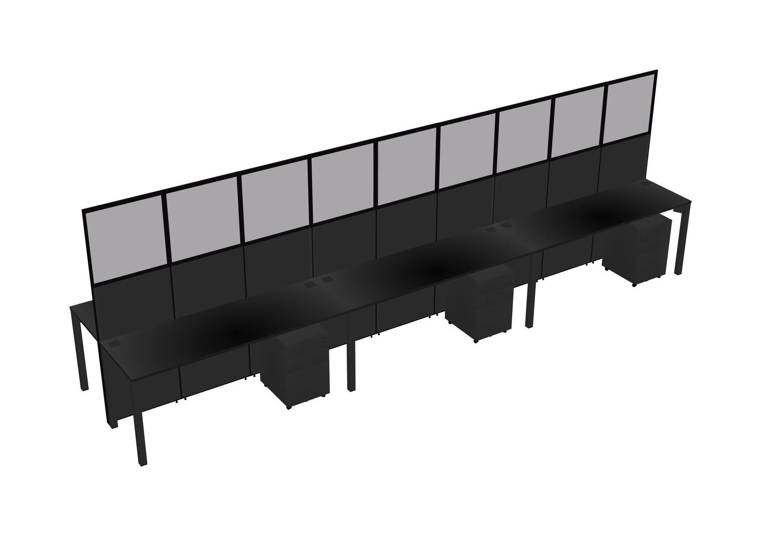 Black Shared Rectangular Office Cubicle Panel System With Mobile Drawers For 6 Persons